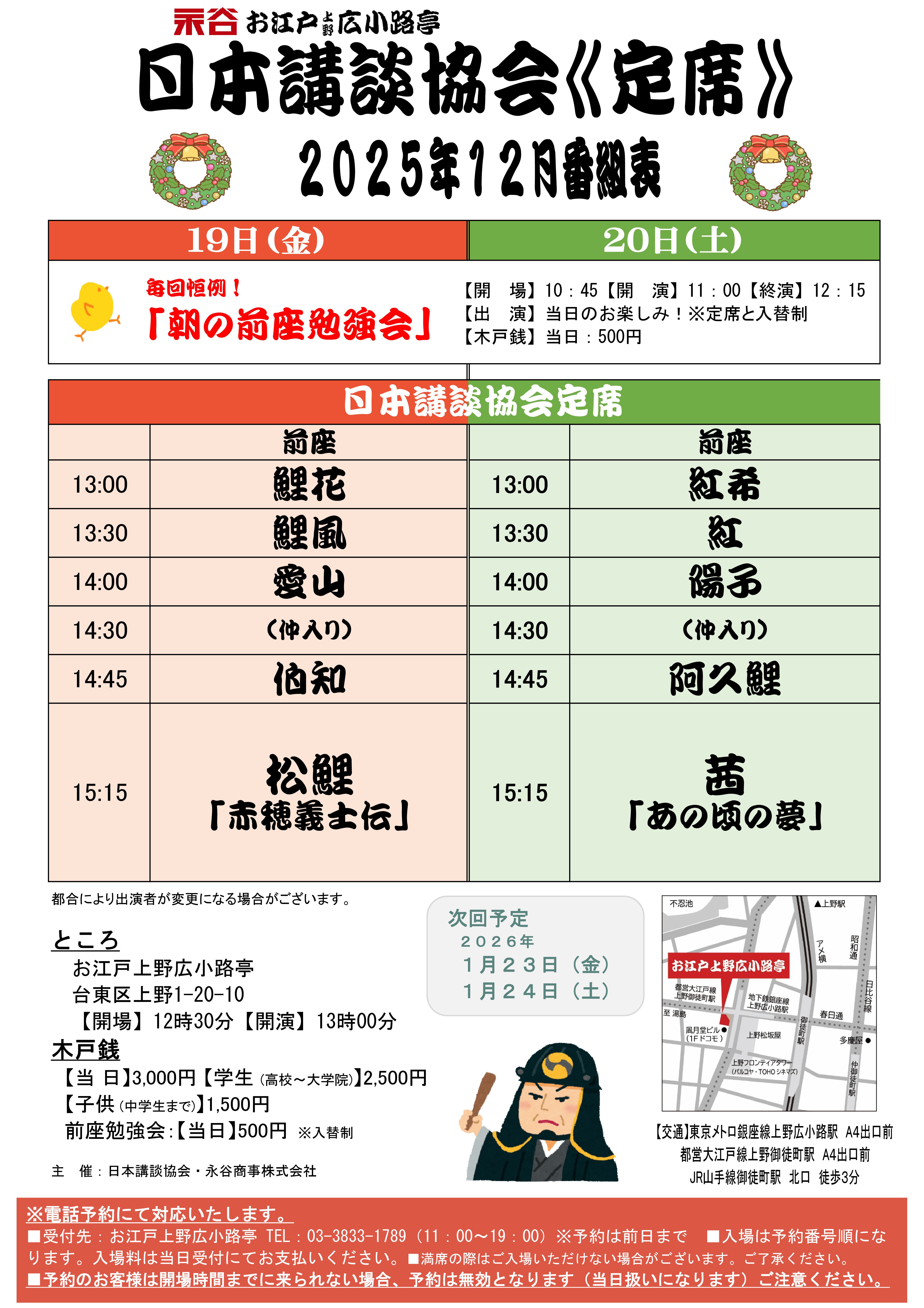 2025年12月 お江戸上野広小路亭 公演番組表